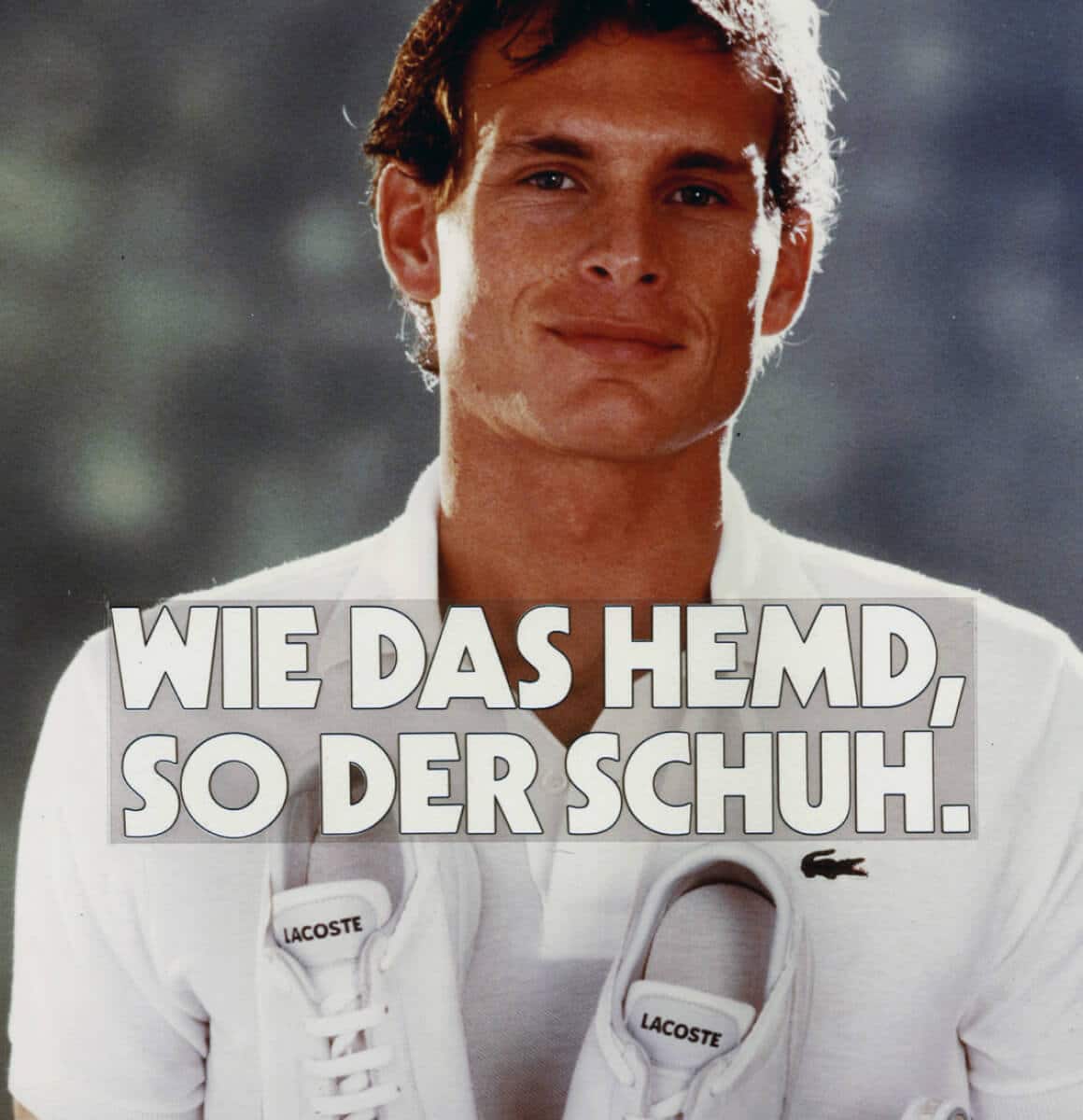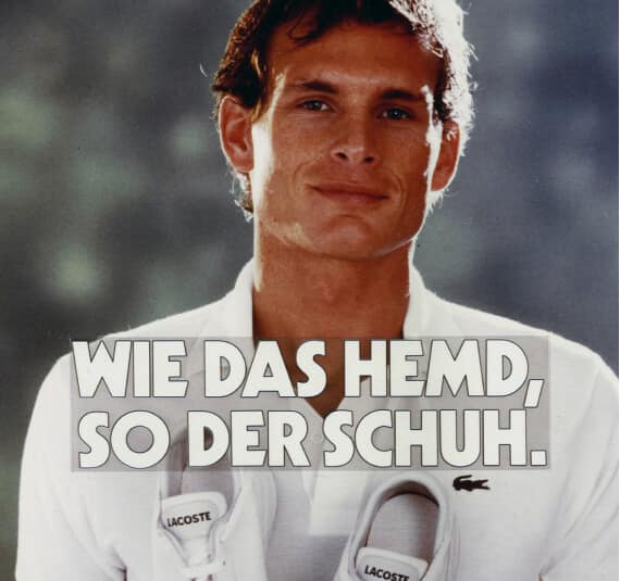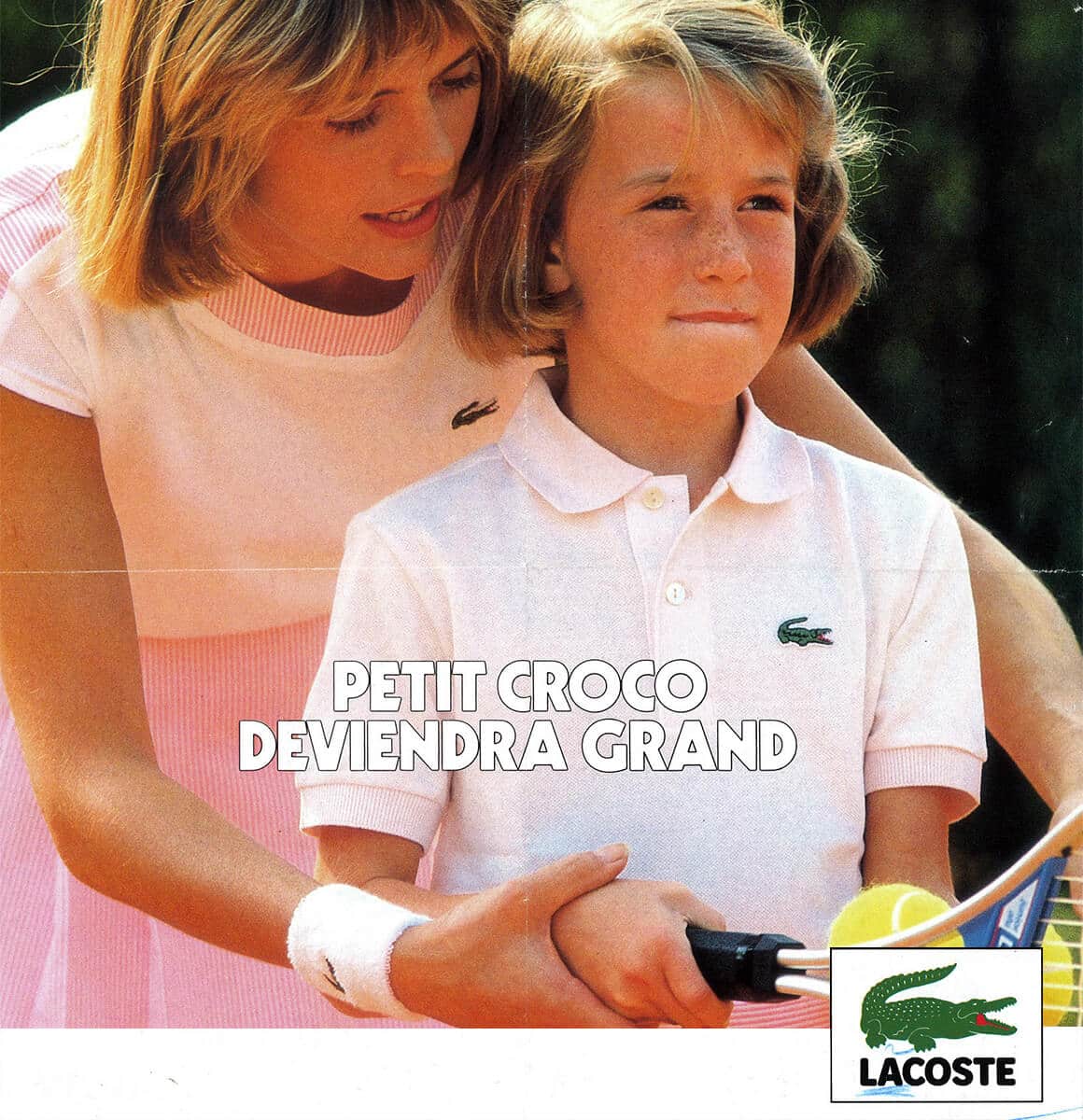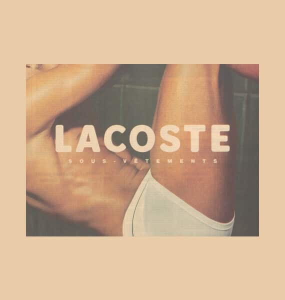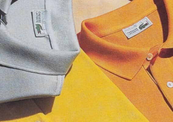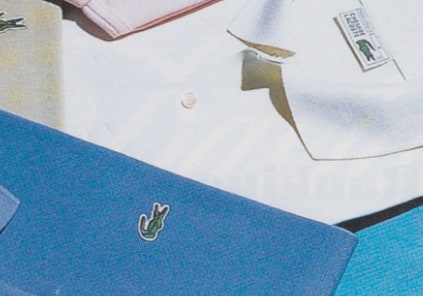First advertisement for Lacoste shirts, 1933, and Lacoste advertisement of 1986