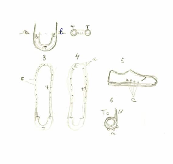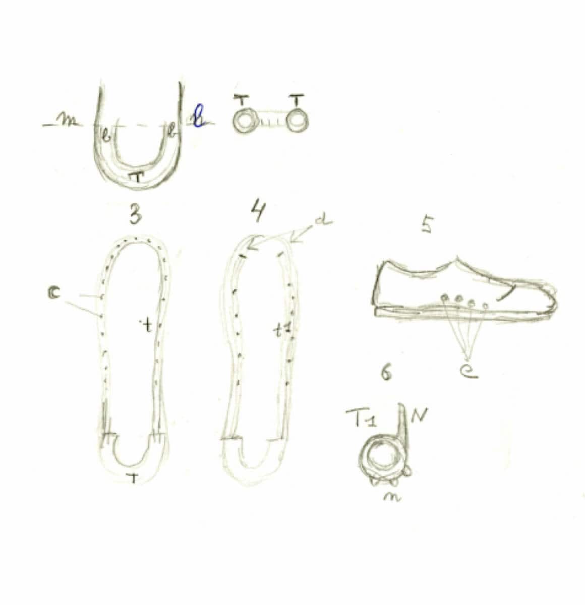 First freehand sketch of the "René" by René Lacoste. 1957. Patent: n°75 2651 entitled "Anti-slip plastic layer".