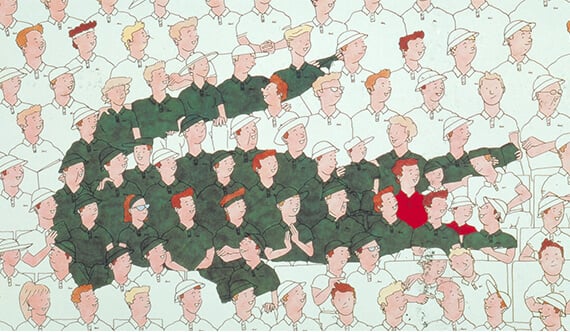 2013. Who better than the British art director to turn the white L.12.12 polo shirt into a collector's must-have? Peter Saville blurs the lines of the crocodile... and turns it into 80 different embroideries. For the 80th anniversary of the brand.