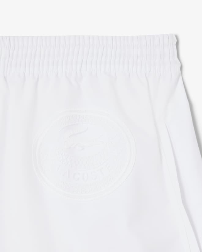 These shorts embodies the sophisticated sporting elegance from the Lacoste SS25 runway. Made from cotton poplin with a boxing-inspired cut, finished with lacy tennis badges and signature crocodiles for a unique result. A striking blend of fashion and sporting style.