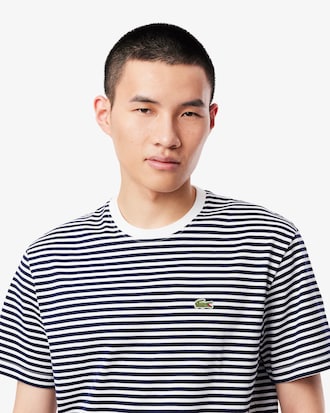 Product image gallery + List of variations White / Navy Blue • 522 Men's Striped Heavy Cotton T-Shirt Men - White - Lacoste - T-Shirts Reviews (37) $70.00 Select Colors On Sale Select your size Find the perfect size Recommended size: Size guide Add to shopping bag Check boutique availability Men's Striped Heavy Cotton T-Shirt Free shipping for all ground orders. Free return & exchanges within 30 days. Description Product Ref. TH9749-51 The latest take on the Lacoste striped tee, in a dense, comfortable, heavy jersey. A quality garment for spectacular results. Cotton jersey Crew neck Classic, comfortable fit, dropped shoulders Embroidered crocodile on chest Care MACHINE WASH COLD NORMAL SETTING DO NOT BLEACH DO NOT TUMBLE DRY IRON LOW TEMPERATURE MAXIMUM 110 DEGREES CELSIUS DO NOT DRY-CLEAN LINE DRY Size & fit Classic Fit Composition Cotton (100%)